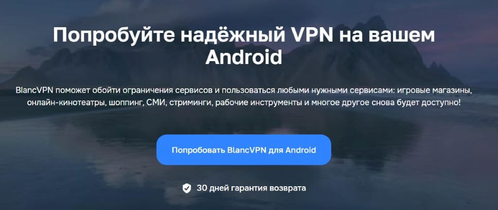Установка BlancVPN на Андроид возможна двумя способами: либо напрямую через магазин приложений, либо же через официальный сайт проекта. Если вы живёте в России, то GooglePlay может скрывать приложение BlancVPN из поисковой выдачи, поэтому рекомендуется воспользоваться инсталляцией через официальный сайт.