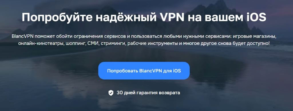Для того, чтобы инсталлировать приложение BlancVPN на айфон, необходимо перейти на официальный сайт продукта. Переходить требуется с устройства, на которое вы хотите установить BlancVPN. Выберите русский язык интерфейса, после чего нажмите на пункт “Скачать” для перехода к странице выбора приложений.